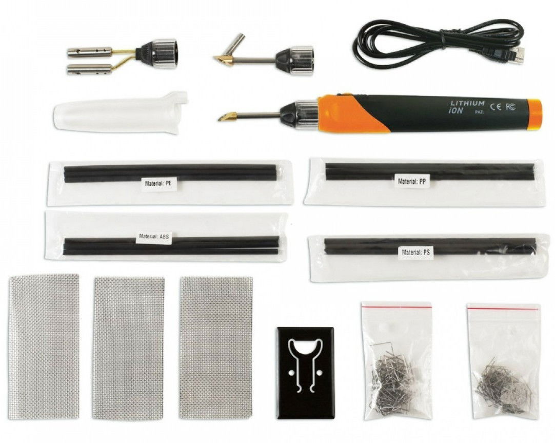 - Műanyaghegesztő készlet, amely négy különböző típusú műanyag hegesztőpálcával van kiegészítve, amelyek alkalmasak kisebb törött vagy repedt műanyag alkatrészek, mint például tükrök, lökhárítók, sárvédő betétek, stb. javítására.